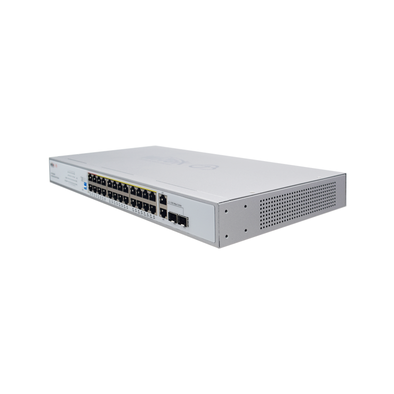 ● 24 x 10/100Mbps RJ45 PoE Ports, 2*1000Mbps Combo SFP